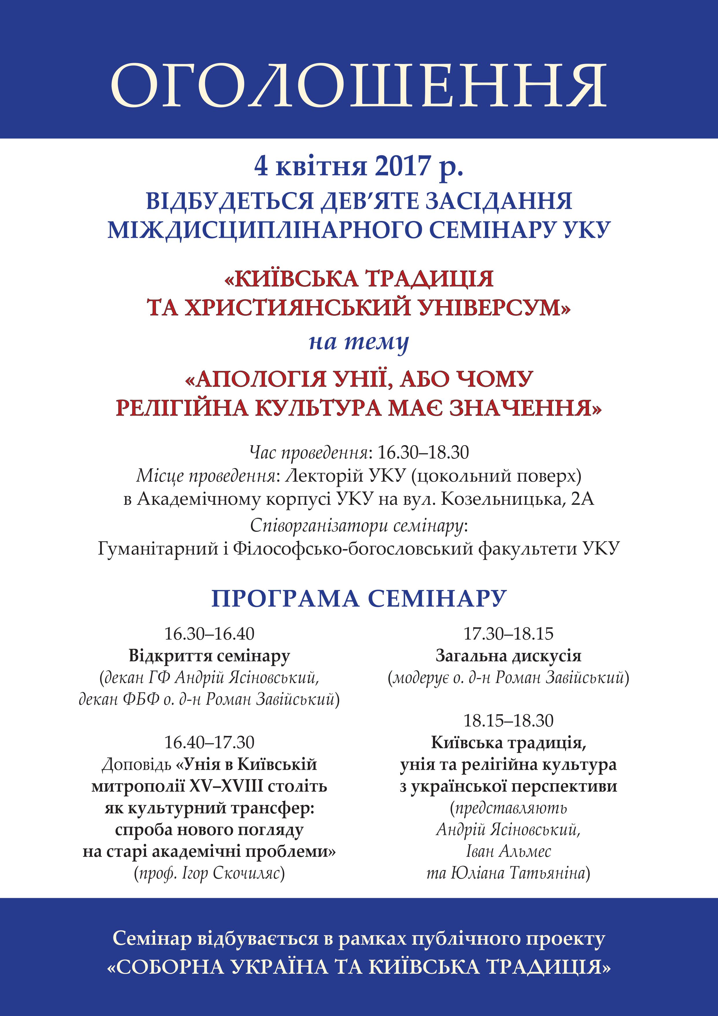 Девʼяте засідання Міждисциплінарного семінару УКУ «Київська традиція та християнський універсум»
