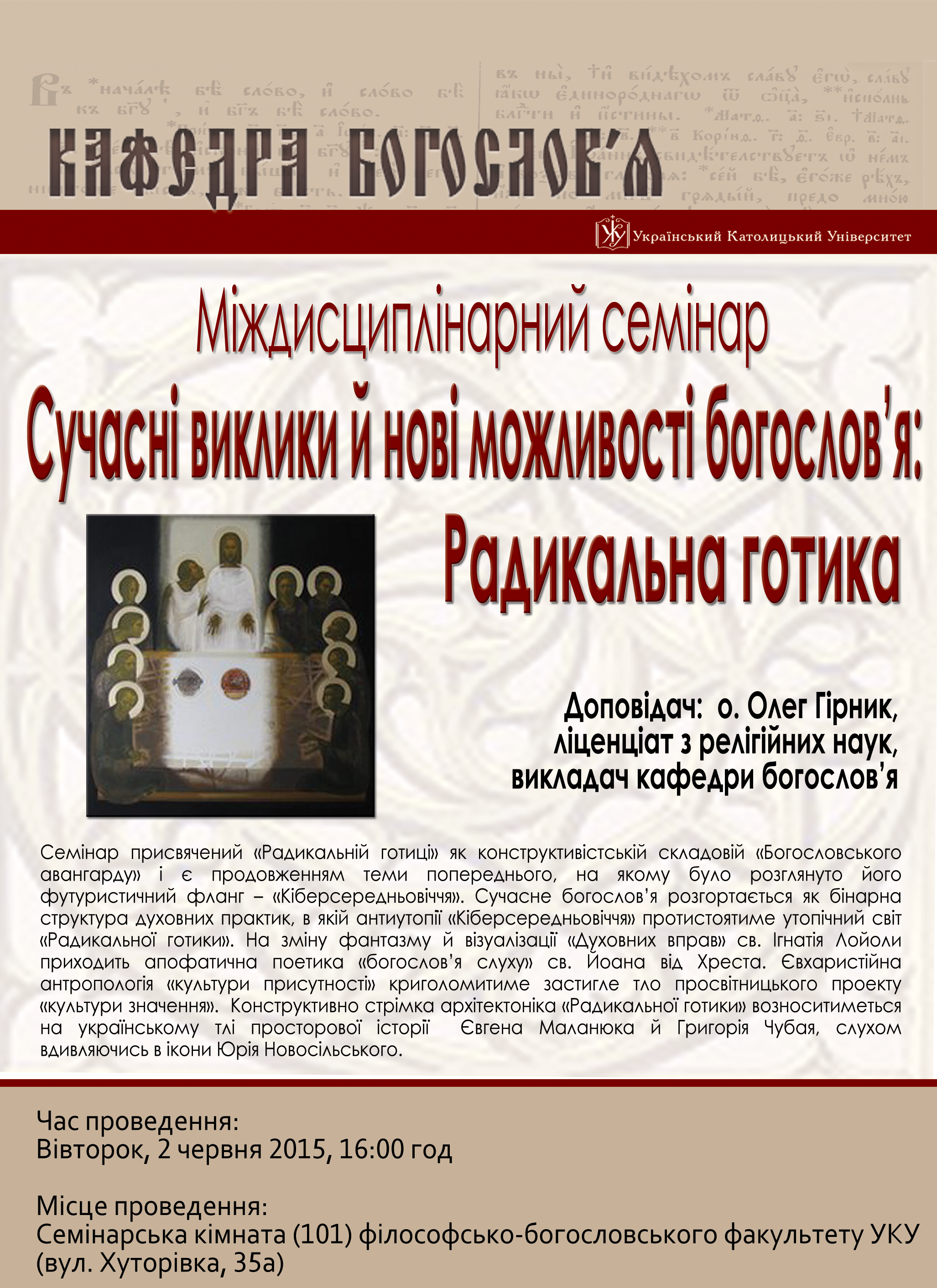 Міждисциплінарний семінар “Сучасні виклики й нові можливості богослов’я: Радикальна готика”