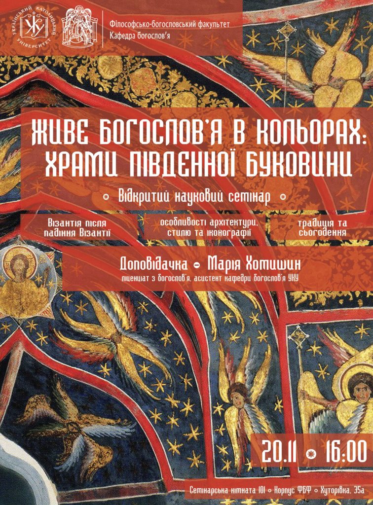Кафедра богослов’я ФБФ УКУ запрошує на відкритий науковий семінар “Живе богослов’я в кольорах: храми Південної Буковини”.