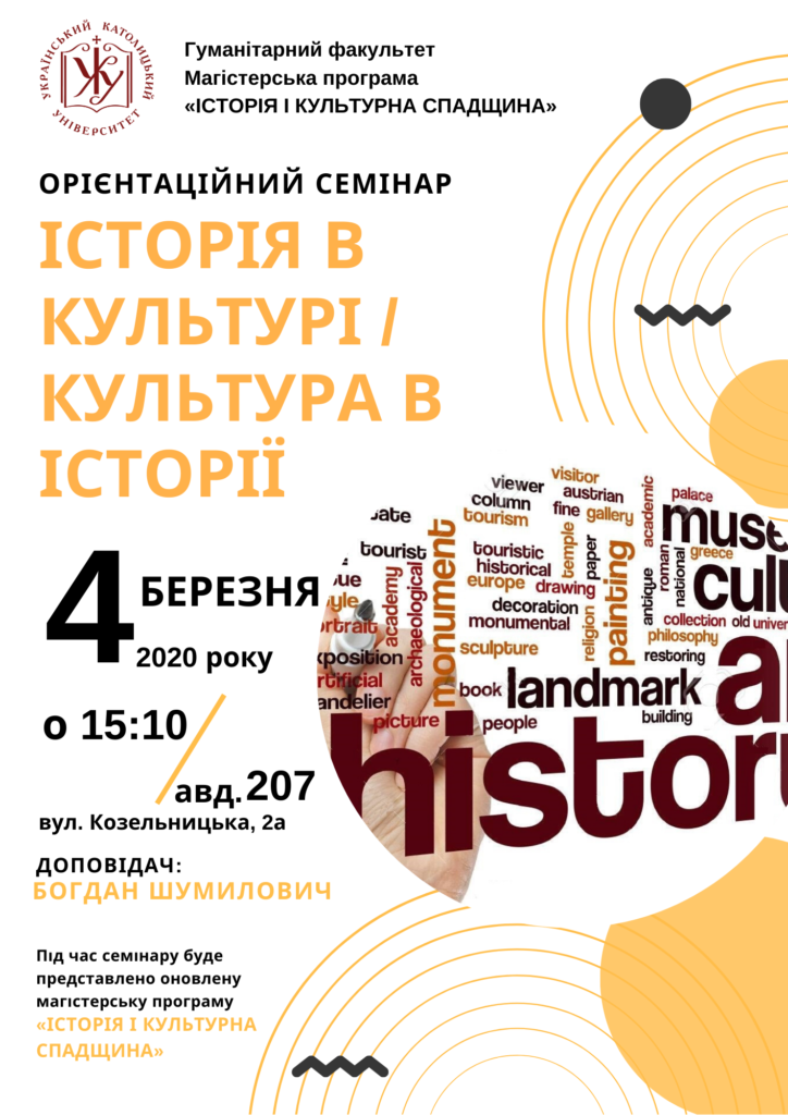 Орієнтаційний семінар: ” ІСТОРІЯ В КУЛЬТУРІ / КУЛЬТУРА В ІСТОРІЇ “