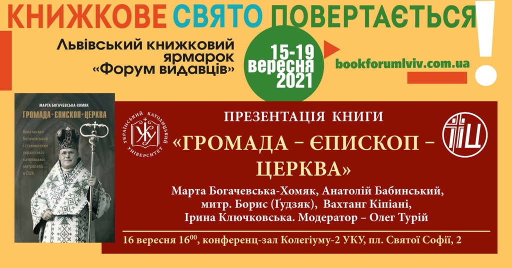 Інститут Історії Церкви та Видавництво УКУ запрошують на презентацію книжки Марти Богачевської-Хомяк «Громада – єпископ – Церква: Константин Богачевський і становлення української католицької митрополії в США»