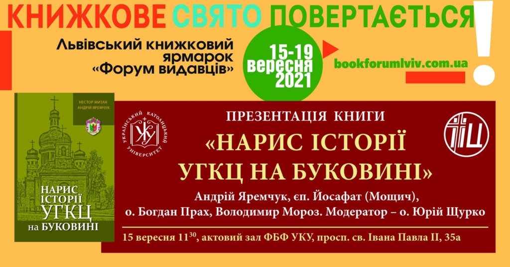 Інститут Історії Церкви та Видавництво УКУ запрошують на презентацію видання “Нарис історії УГКЦ на Буковині”