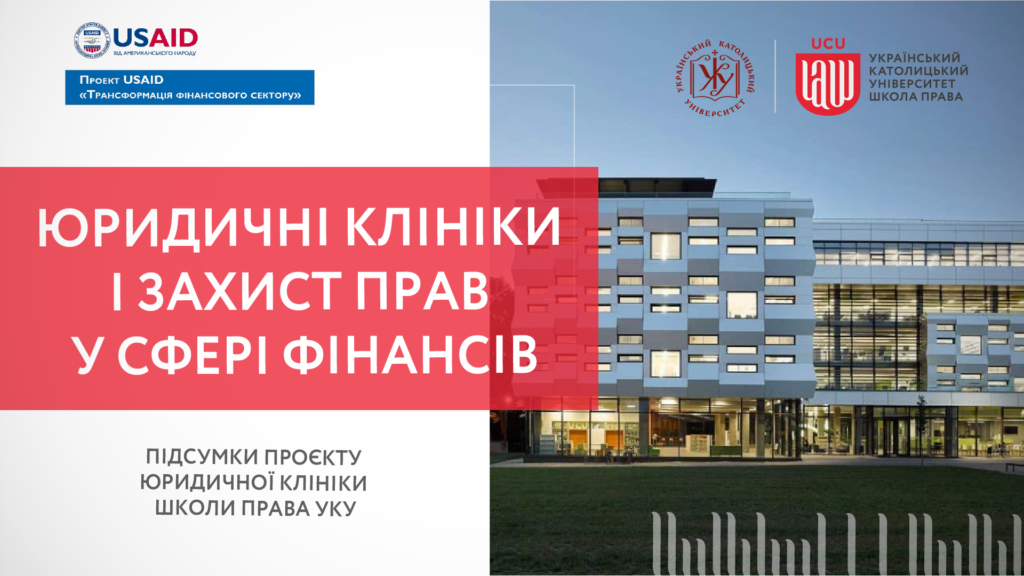 Майже рік Юридична клініка Школи права УКУ працює над проектом «Захист прав споживачів та безкоштовна правова допомога споживачам фінансових послуг» за підтримки Проекту USAID «Трансформація фінансового сектору». У п’ятницю, 20 листопада, команда Юрклініки запрошує на презентацію результатів проекту.