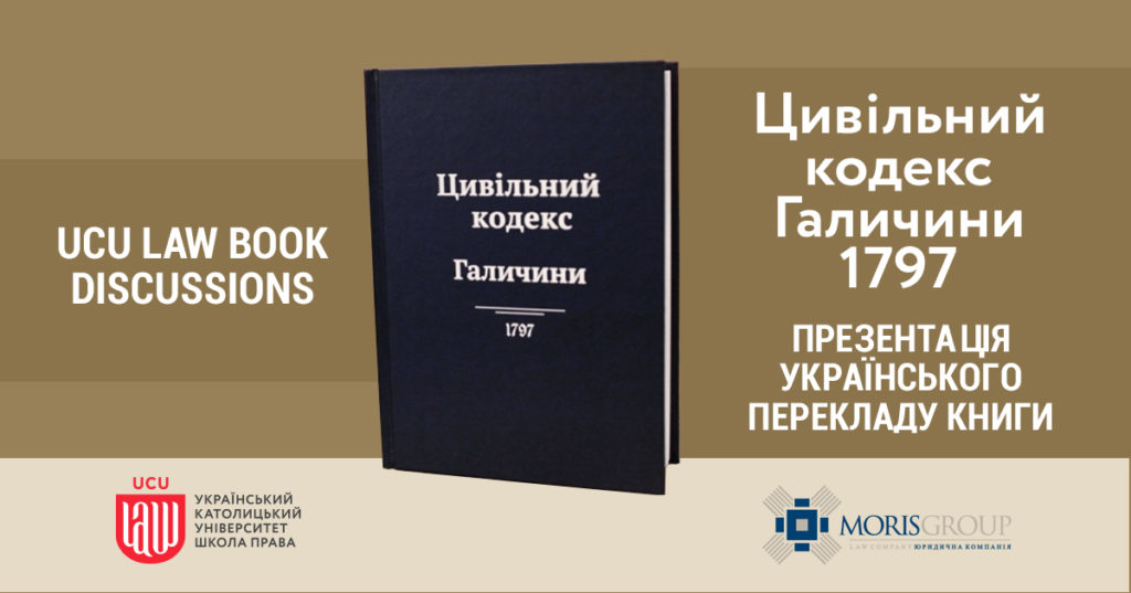 Школа права УКУ запрошує на презентацію українського перекладу книжки “Цивільний кодекс Галичини 1797”, однієї із перших новітніх цивільних кодифікацій у Європі. Захід відбудеться 20 жовтня о 15:30 год. в Академічному корпусі УКУ (м. Львів, вул. Козельницька, 2а).