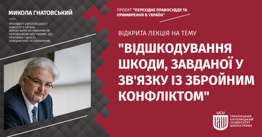 Одним із головних завдань для перехідного правосуддя є забезпечення репарації – відшкодування шкоди, яка була завдана індивідам під час збройного конфлікту. Про те, що потрібно для виконання цього завдання, розповість Микола Гнатовський під час відкритої лекції «Відшкодування шкоди, завданої у зв’язку із збройним конфліктом» 25 листопада.