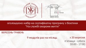 Сертифікатна програма Школи біоетики Українського католицького університету «На службі охорони життя» запрошує на навчання