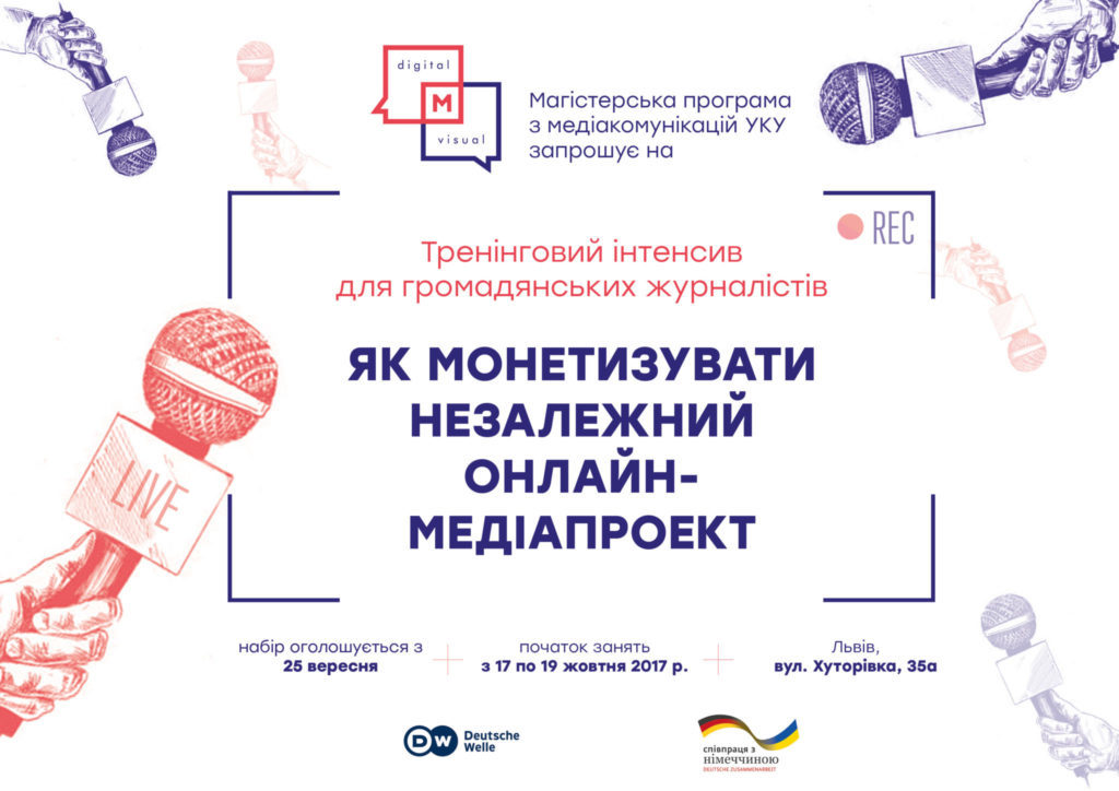 Магістерська програма з медіакомунікацій Українського католицького університету спільно з Deutsche Welle Akademie оголошує набір громадянських журналістів на тренінговий інтенсив “Як монетизувати незалежний онлайн-медіапроект”.