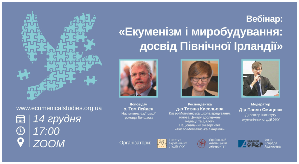 Інститут екуменічних студій спільно з Фондом Конрада Аденауера, запрошують на вебінар «Екуменізм і миробудування: досвід Північно