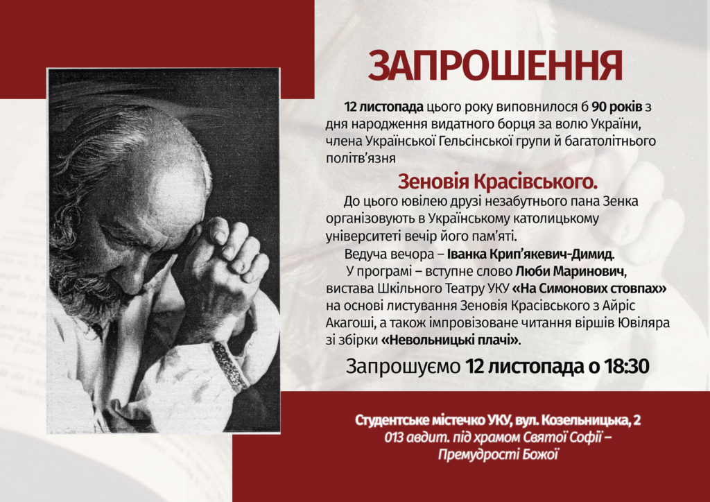 Вечір пам’яті Зеновія Красівського Tuesday, 12 November, 2019 18:30 Sorry, this entry is only available in Ukrainian. Digest of events and news Get the weekly newsletter of UCU events and news in your mailbox ПІДПИСАТИСЬ Similar events Saturday, 21 August, 2021 Charitable round table: “Those who forged Ukraine’s independence” Monday, 13 September, 2021 UCU Days: 30 Years of Ukrainian Independence. What Kind of... Saturday, 26 June, 2021 Opening of Collegium II, Graduation Saturday, 26 June, 2021 Commencement Ceremony at the Ukrainian Catholic University Thursday, 15 April, 2021 Презентація навчального курсу з цифрових навичок для медиків