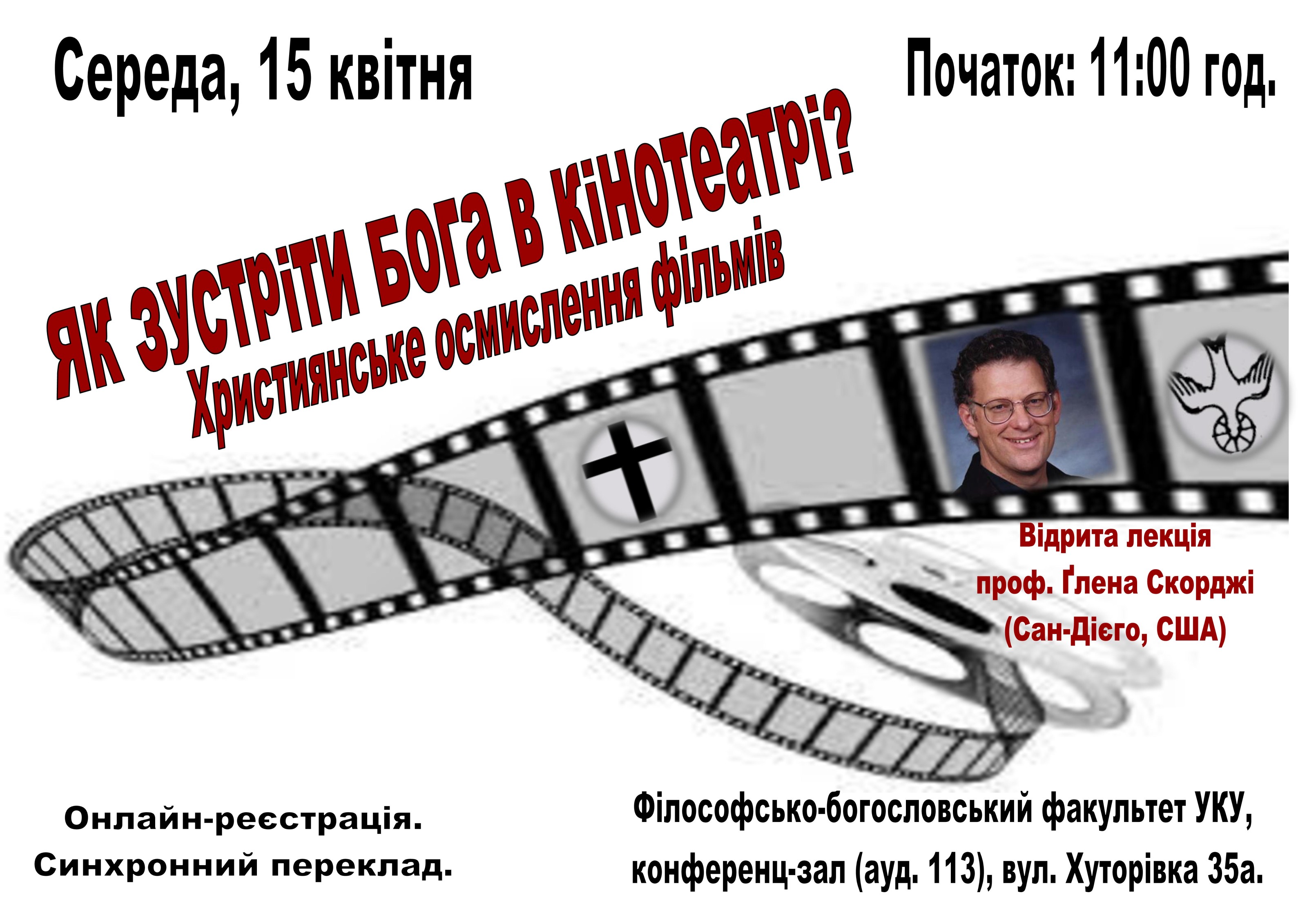 Відкрита лекція американського професора Ґлена Скорджі (Glen G. Scorgie): «Як зустріти Бога в кінотеатрі? Християнське осмислення фільмів»