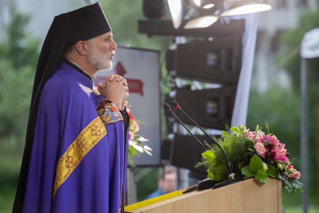 Далі до випускників звертається владика Борис Ґудзяк: “Ви – нове покоління для нової України. Саме під цим гаслом відбувається велика благодійна компанія, яка подарувала нам ці будинки довокла і згуртувала десяток тисяч друзів-жертводавців УКУ з багатьох країн. А єдиний спосіб подякувати їм за відкритість, мужність, здатність спілкуватися, свідчити – бути гідними їх служіння”.