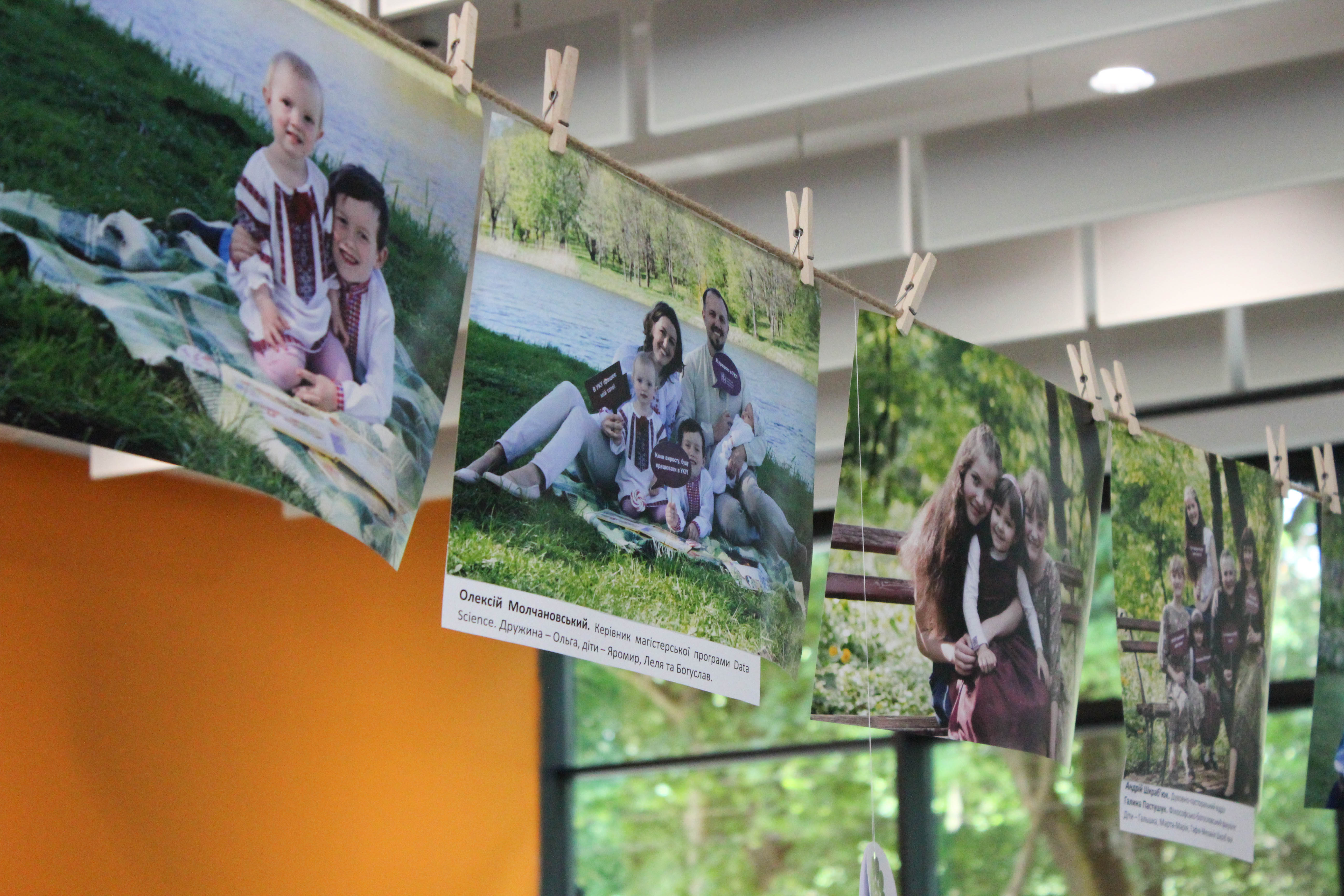 Поміж колонами на лляній мотузці простягнулись світлини працівників та їхніх рідних. Комусь лише місяць, але він вже впевнено позує з мамою і татом, хтось обіймається чи їсть кольорові цукерки, когось підкидають батьки до хмаринок, а хтось сором’язливо усміхається, бо не дуже то й любить фотографуватись. Батьки ж не відстають. Такі серйозні та стримані в емоціях на роботі, поряд із рідними дозволяють собі також хоч ненадовго побути безтурботними дітлахами.