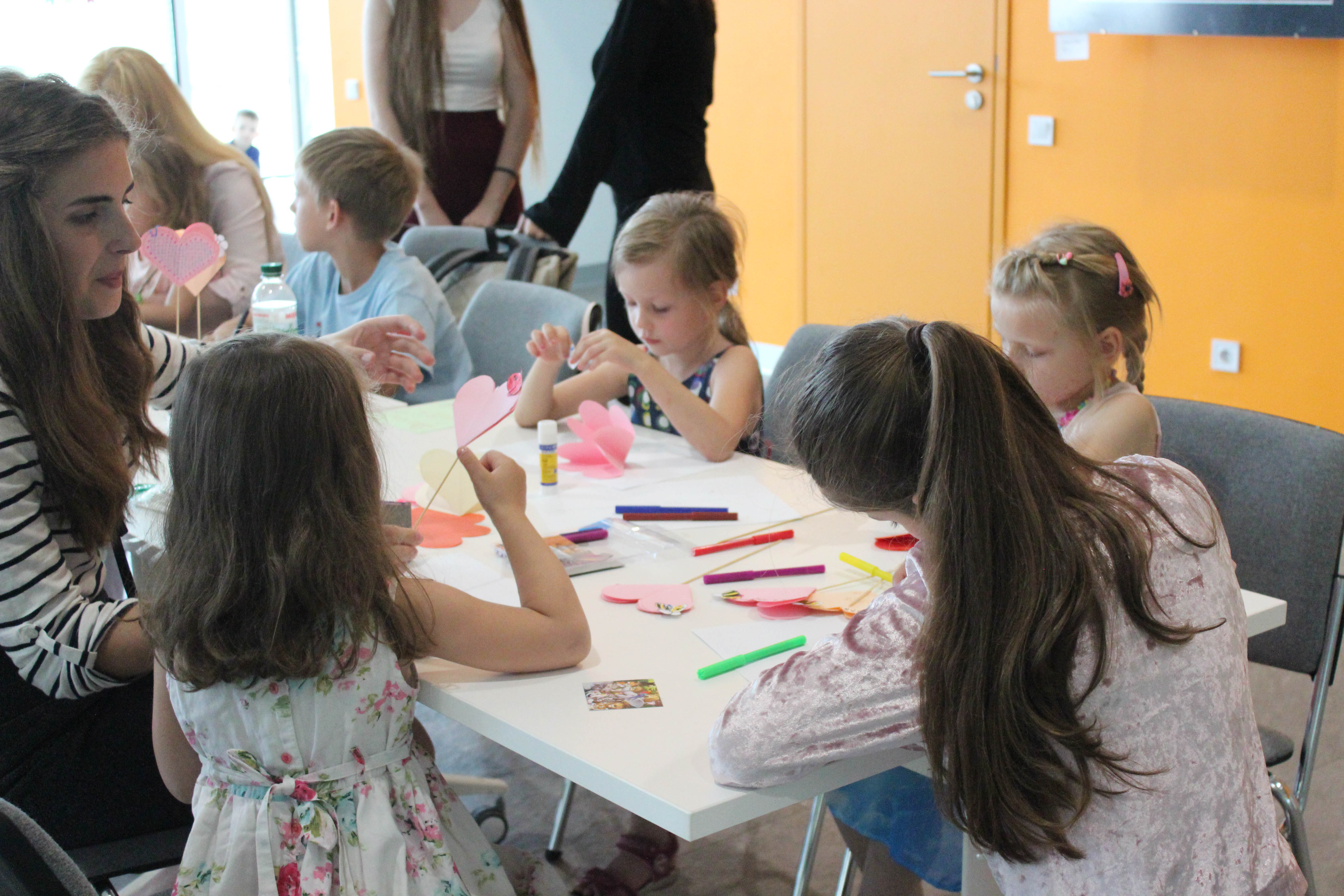 У підніжжі фотосушки розмістився ярмарок пропозицій для дітей та батьків на літо. Когось цікавить мандрівка Дністром, інших – активний відпочинок у горах, майстер-класи від арт-школи чи написання ікони. Дівчатка підбирають олівці для розмальовки, а хлопці – беруть участь у квесті. Найбільше пожвавлення довкола столів, де своїми руками дітки творять листівки для батьків.