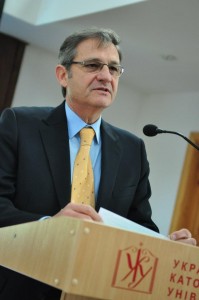 У політичній свідомості України ще немає повного розуміння важливості таких питань, як верховенство права, право людини і формування цінностей, які сповідує європейська спільнота. Ці цінності ще не повністю вкоренилися в українській свідомості. Але я впевнений, що в Українському католицькому університеті поділяють європейські цінності. Саме ви зможете відіграти важливу роль у трансформації суспільства та процесі його реформування.