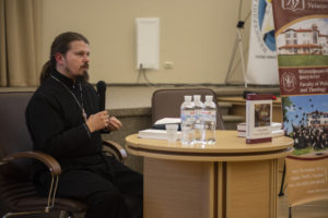 Завідувач Кафедр богослов’я п. Віктор Жуковських поділився із гостями своїми спогадами про зародження проекту цілої низки перекладів, до яких упродовж 6 років долучається все більше викладачів та перекладачів.