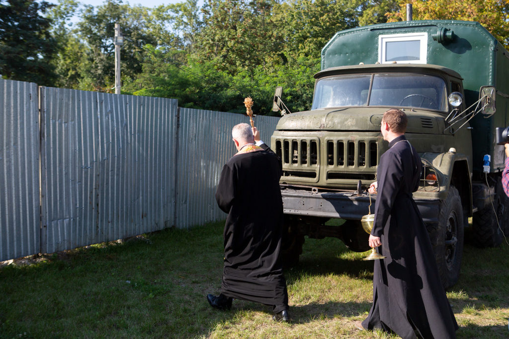 Днями в УКУ відбувся чин благословення і передачі на передову уже третього спеціально переобладнаного під прально-банний комплекс ЗІЛ 131 із КУНГом. З допомогою цієї автівки у польових умовах бійці зможуть митися та прати одяг. Комплекс передали у 24 механізовану бригаду ім. Данила Галицького, котра згодом поїде у наступну ротацію в зону бойових дій на Сході України.