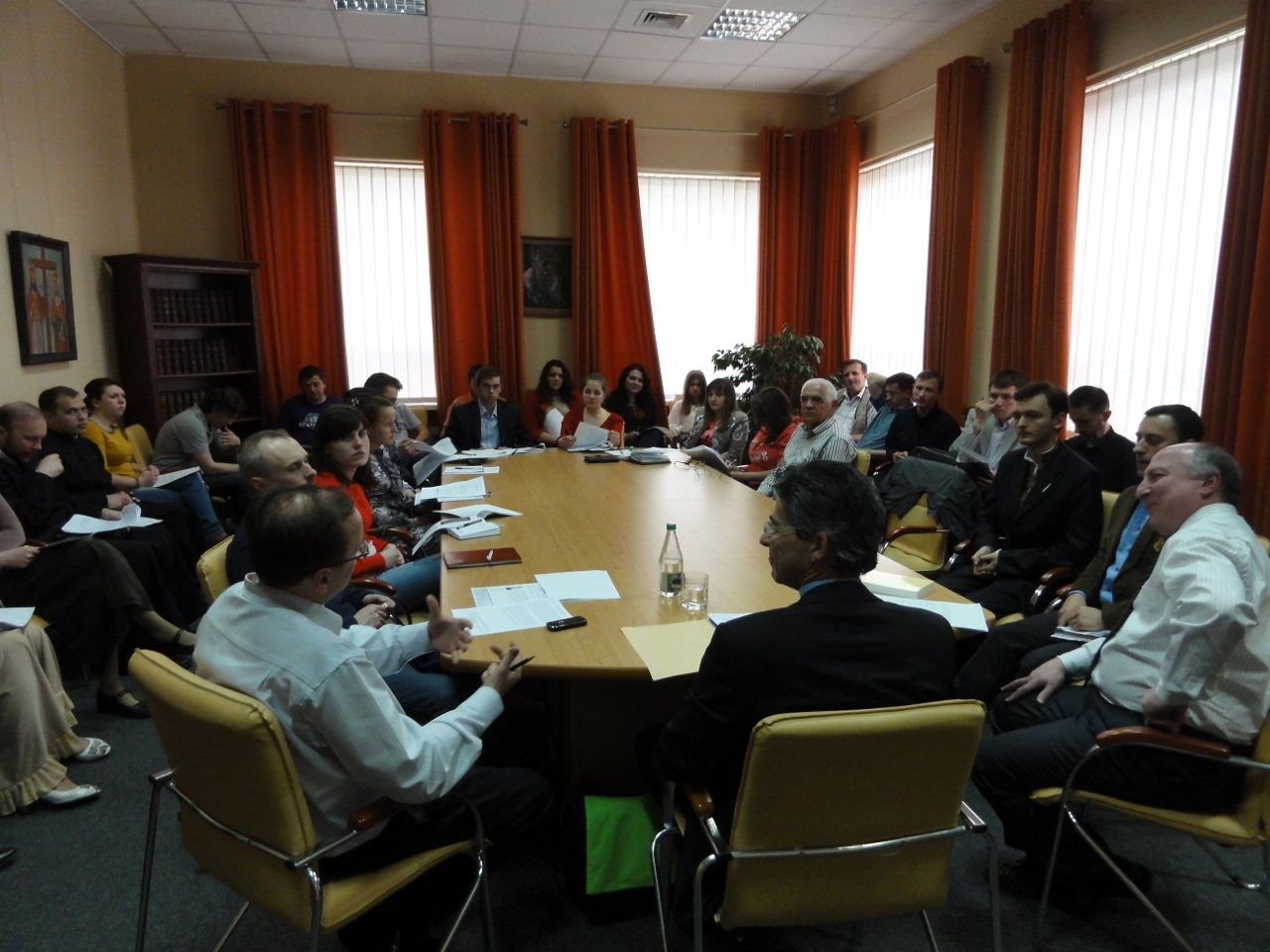Відбулась також зустріч проректора з наукової роботи Олега Турія та завідувача кафедри богослов’я Віктора Жуковського з членами швейцарської делегації, на якій учасники обговорили можливі напрямки подальшої співпраці філософсько-богословського факультету УКУ і Богословського факультету Бернського університету у сфері наукових досліджень, організації спільних наукових богословських конференцій та обміну викладачами, які мали б лягти в основу угоди між двома навчальними закладами. Представники Товариства співпраці між Берном і Львовом виявили готовність всебічно підтримувати спільні проекти українських і швейцарських богословів та церковних істориків.