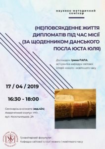 Кафедра світової історії нового і новітнього часу запрошує у середу, 17 квітня 2019 р., на науково-методичний семінар: