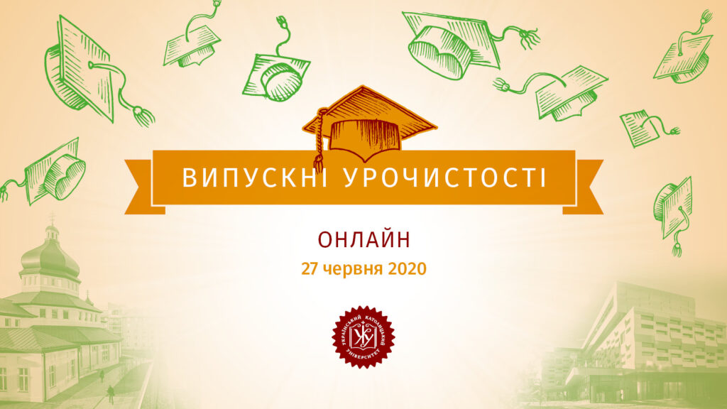 Втім наш Український католицький університет, вивчивши американські та європейські практики проведення випускних у нових обставинах, уже цієї суботи, 27 червня організовує онлайн-випускний, до перегляду якого запрошує доєднатися спільноту УКУ та усіх охочих. Онлайн-трансляція відбуватиметься на YouTube каналі УКУ о 18:30 (за київським часом) та на офіційній Facebook сторінці університету, а раніше, о 12:00, транслюватимуть святкову Літургію з Церкви Святої Софії-Премудрості Божої.