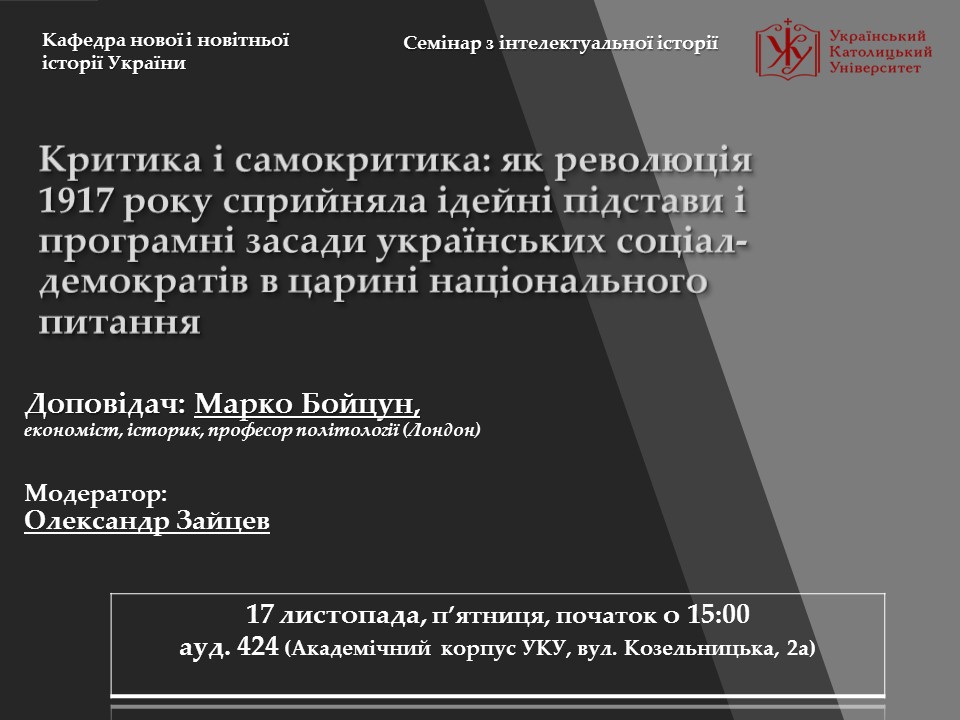 “Критика і самокритика: як революція 1917 року сприйняла ідейні підстави і програмні засади українських соціал-демократів в царині національного питання”