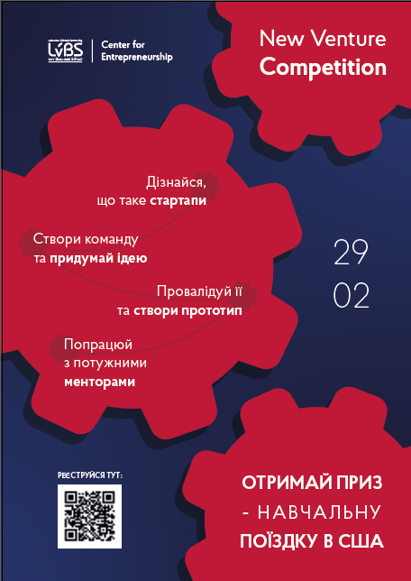 Ви студент УКУ і дійсно хочете навчитися створювати продукти від нуля до успішного бізнесу? Хочете запустити стартап або просто зрозуміти основні бізнес-процеси? Навчитись працювати в команді та з потужними менторами? Ми створили для вас унікальну можливість спробувати досягнути всіх цих речей на конкурсі New Venture Competition (NVC) і виграти у тижневу навчальну програму в США!