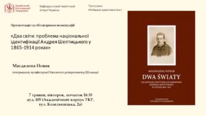 Презентація і обговорення монографії Маґдалени Новак “Два світи: проблема національної ідентифікації Андрея Шептицького у 1865-1914 роках”