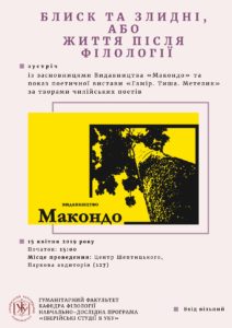 зустріч із засновницями Видавництва «Макондо» і показ поетичної вистави «Гамір. Тиша. Метелик» за творами чилійських поетів.