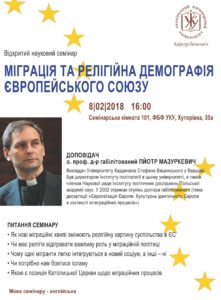 Відкритий науковий семінар “Міграція та релігійна демографія ЄС” 8 лютого
