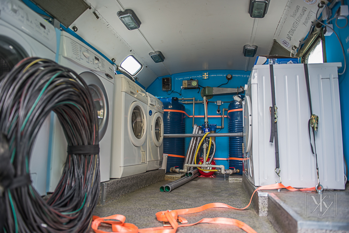 Для облаштування даного приладу Військово-медичний клінічний центр західного регіону передав волонтерам УКУ відповідну техніку – кунг та шасі ЗІЛ-13, на базі якої створено пральну машину. Загальна вартість комплексу становить 115 тисяч гривень. Фінансову підтримку проекту надали Єпископська Конференція Італії, а також працівники та студенти УКУ.